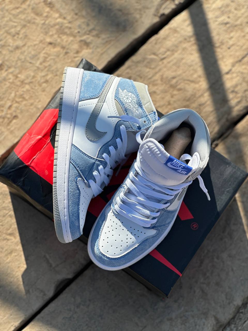 + موارد بیشترکتونی ایر جردن ۱ هایپر رویال (Air Jordan 1 Retro High Hyper Royal) دارای رویه چرمی سفید با روکش های جیر آبی آبرنگی (محو شده) شده است. علامت نایکی Swoosh و بالشتک دور مچ پا دارای کنتراست خاکستری خنثی هستند که به زیبایی این کتونی کلاسیک می افزاید. این رنگ از مدل جردن ۱ یکی از پرفروش ترین و محبوب ترین مدل هاست. یکی از علت های پرطرفداری این مدل قابلیت ست شدن آسان آن با هر لباسی است. نایکی ایر جردن 1 هایپر رویال به علت استایل خاصی که به پا میدهد و طراحی بینظیری که دارد یکی از بهترین انتخاب های هر فرد که علاقه به سبک و استایل های روزمره و کژوال، فشن و استریت استایل دارد است.